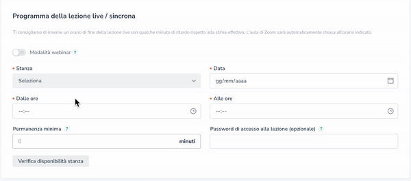 ⚠️ Attenzione. Questa azione è irreversibile! Una volta selezionata la modalità webinar su una lezione, non potrai più tornare indietro.