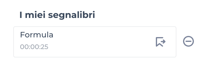 Puoi aggiungere dei segnalibri ai contenuti video per supportare gli studenti durante la fruizione del corso. Dovrai inserire una descrizione chiara e coincisa del segnalibro, la quale verrà visualizzata dagli studenti per guidarli nel ritrovare i punti chiave del video, e il minutaggio in cui esso apparirà.