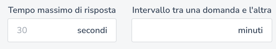 In aggiunta a questa opzione, puoi decidere il tempo massimo entro cui l’utente dovrà rispondere e un intervallo di tempo tra la proposizione di un quesito e l’altro.