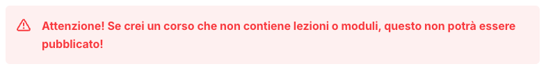 NB: se dividi un corso in moduli e vuoi effettuare un test di inizio e/o fine corso che non sia vincolato ai moduli contenenti le lezioni, crea un modulo adibito esclusivamente al contenimento del test.