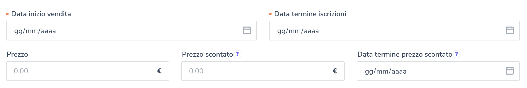 Data inizio vendita: specifica il giorno in cui il corso sarà disponibile per l’acquisto, indipendentemente dalla data di inizio effettivo del corso.