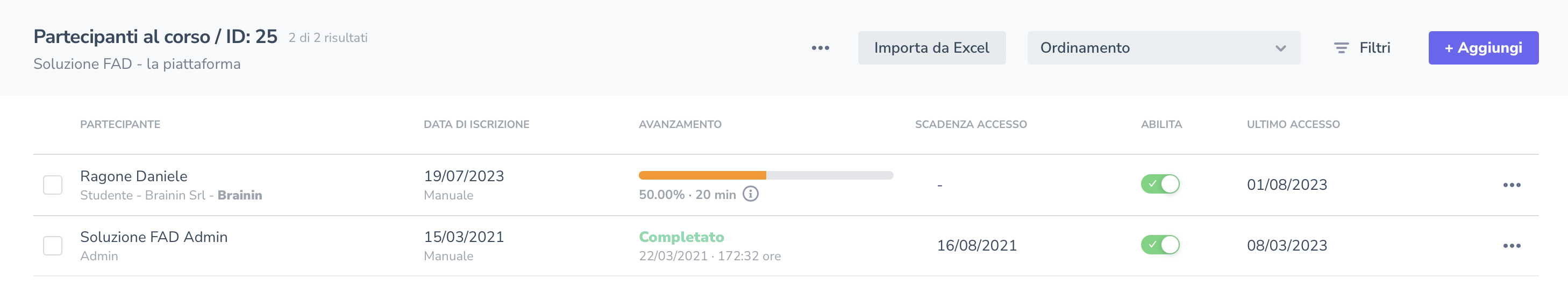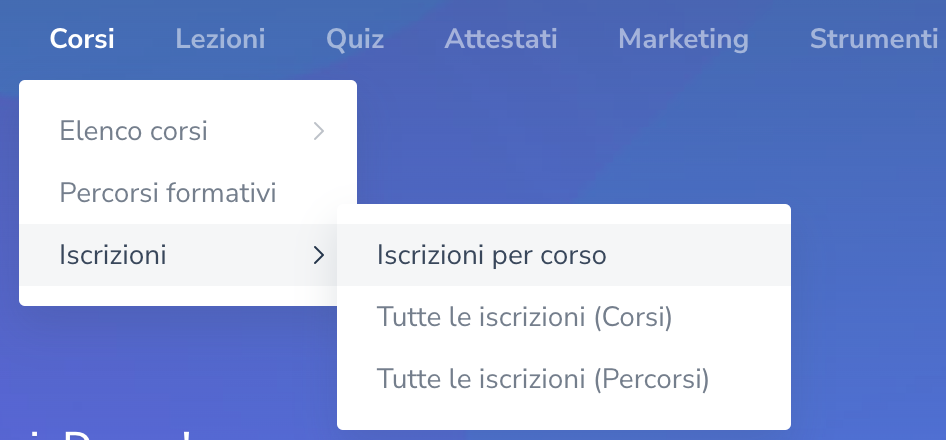 Ritrovi la funzionalità della vecchia sezione Partecipanti ai corsi, che ti consente di consultare e gestire le iscrizioni degli utenti ai singoli corsi.Tutte le iscrizioni ai corsi