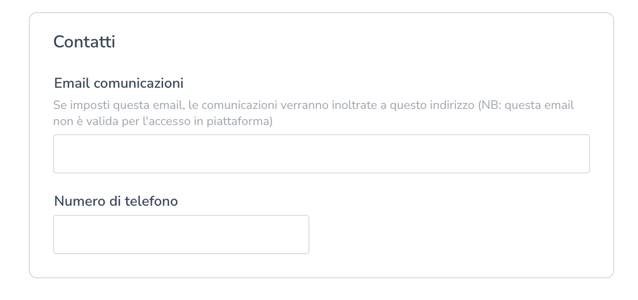 Questo indirizzo non ha valenza di credenziale di accesso e, di conseguenza, può essere associato a più utenti senza conflitti. Quando nella scheda anagrafica di uno studente sono presenti sia un indirizzo email principale che uno dedicato alle comunicazioni, le notifiche verranno inviate esclusivamente all’indirizzo di comunicazioni.