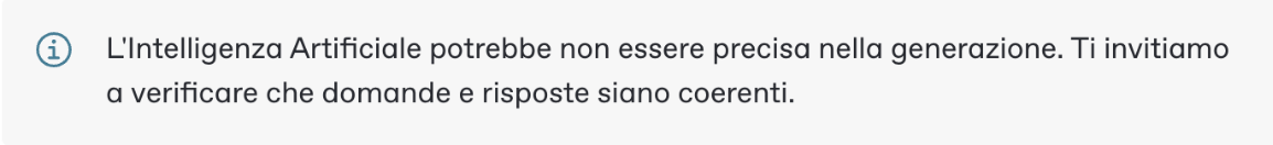 Con un semplice clic, l’AI "fa la sua magia". In pochi istanti, il quiz richiesto viene generato, offrendo un risparmio di tempo significativo rispetto alla creazione manuale. Una volta completata la generazione, viene fornito un riepilogo della richiesta effettuata, che consente di verificare rapidamente la corrispondenza tra i risultati e le aspettative iniziali.