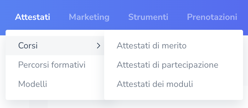 All'interno delle sezioni Attestati è possibile accedere a tutti i certificati rilasciati, con la possibilità di consultarli, filtrarli e scaricarli in pochi click.