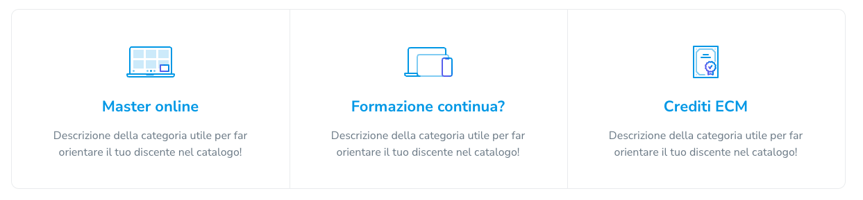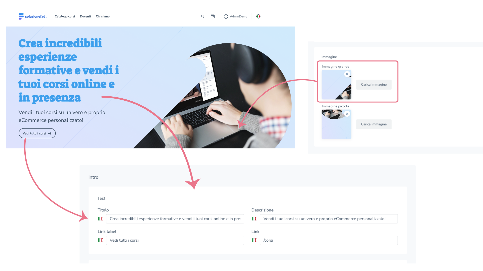 Intro: inserisci il titolo e la descrizione che verranno mostrati nel banner introduttivo in cui presenti il tuo catalogo corsi.