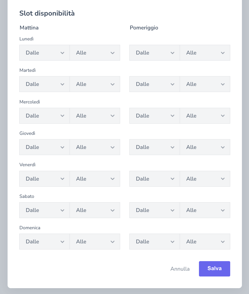 Inserendo infine gli slot disponibili e cliccando su Salva il calendario sarà pronto e disponibile ai discenti.