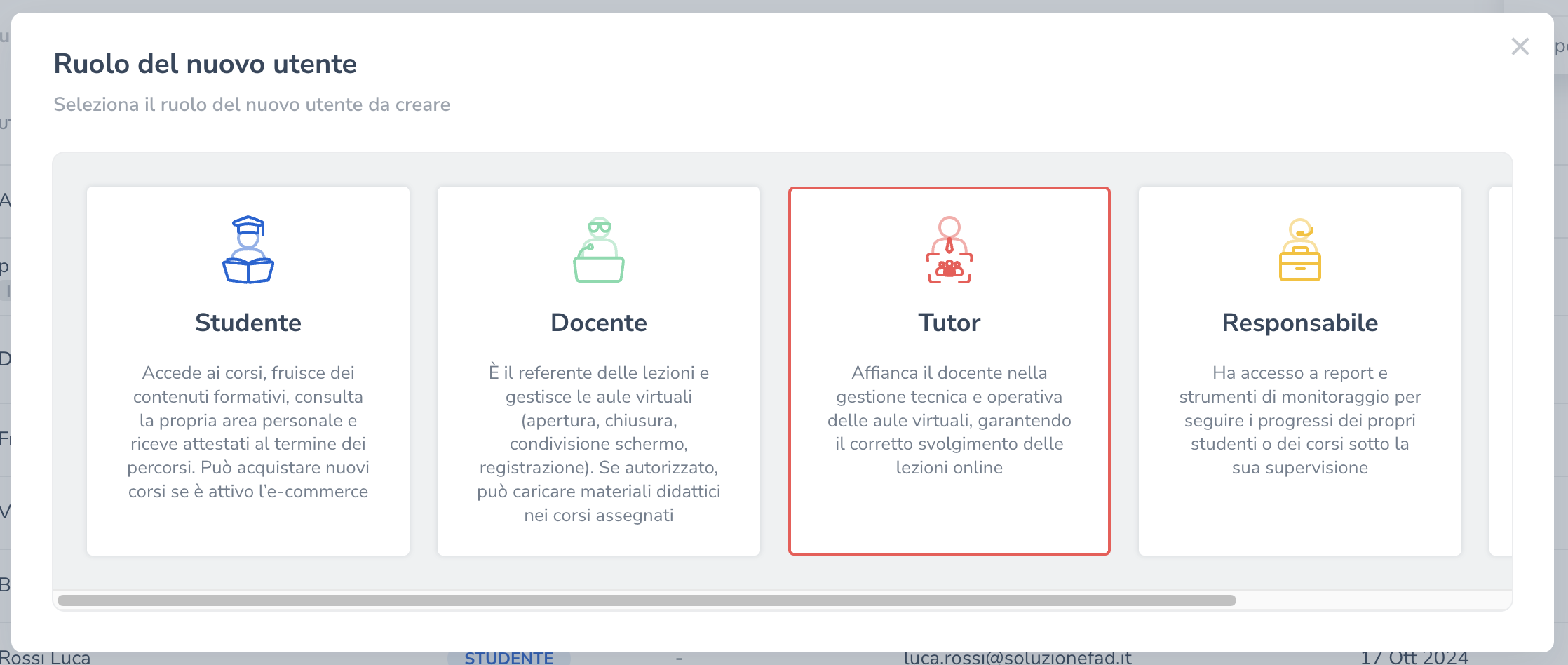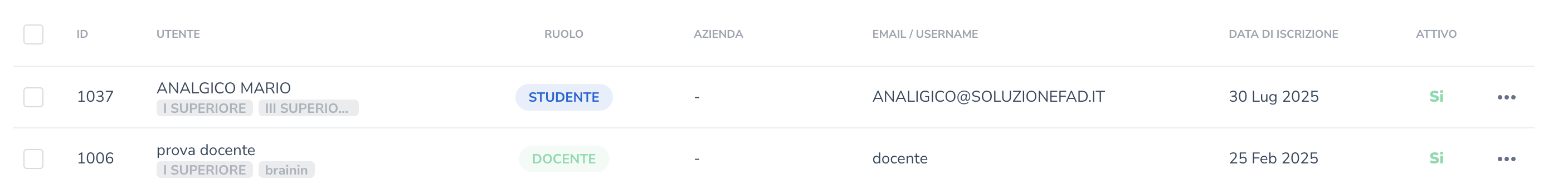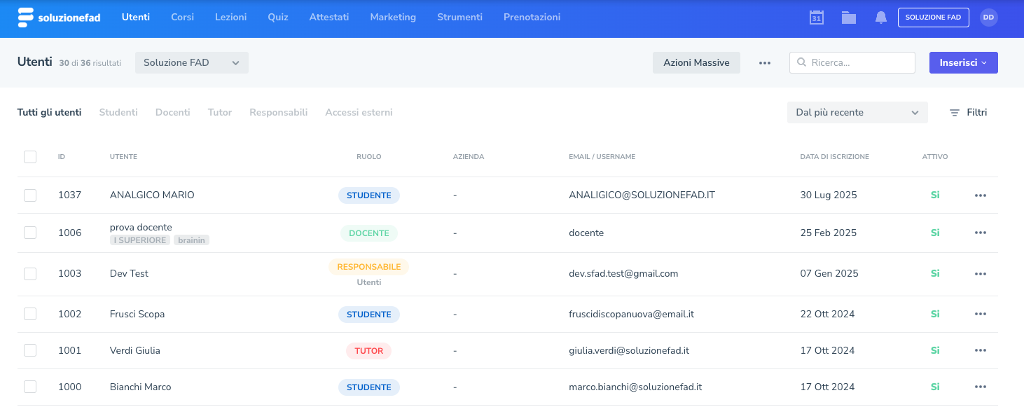 Da agosto 2025, Soluzione FAD permette di gestire gli utenti in maniera più precisa e unificata consentendo agli admin di gestire al meglio le informazioni anagrafiche di ognuno di essi.