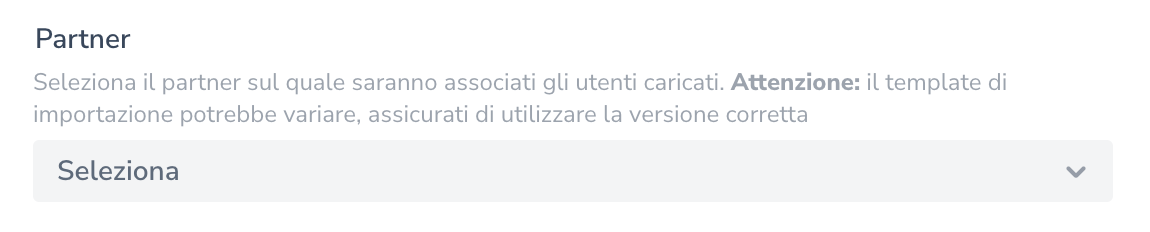 NB: se hai il sistema partner attivo, assicurati di utilizzare il template corretto. In base al partner selezionato, potrai scaricare il corrispondente.